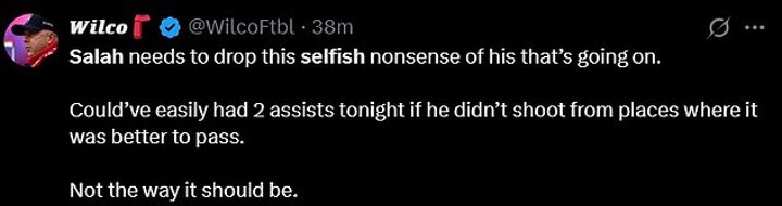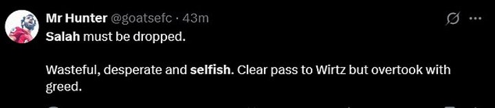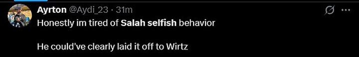 A third claimed they were 'tired of Salah's selfish behaviour'. 'He could've clearly laid it off to Wirtz,' they added.