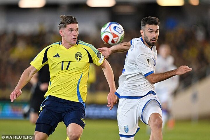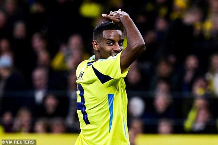 Alexander Isak went close to finding a much-needed equaliser for his country on three occasions, including in stoppage-time.