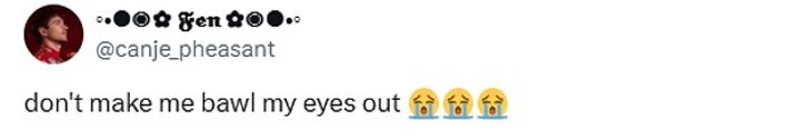'Don't make me bawl my eyes out,' a third wrote.