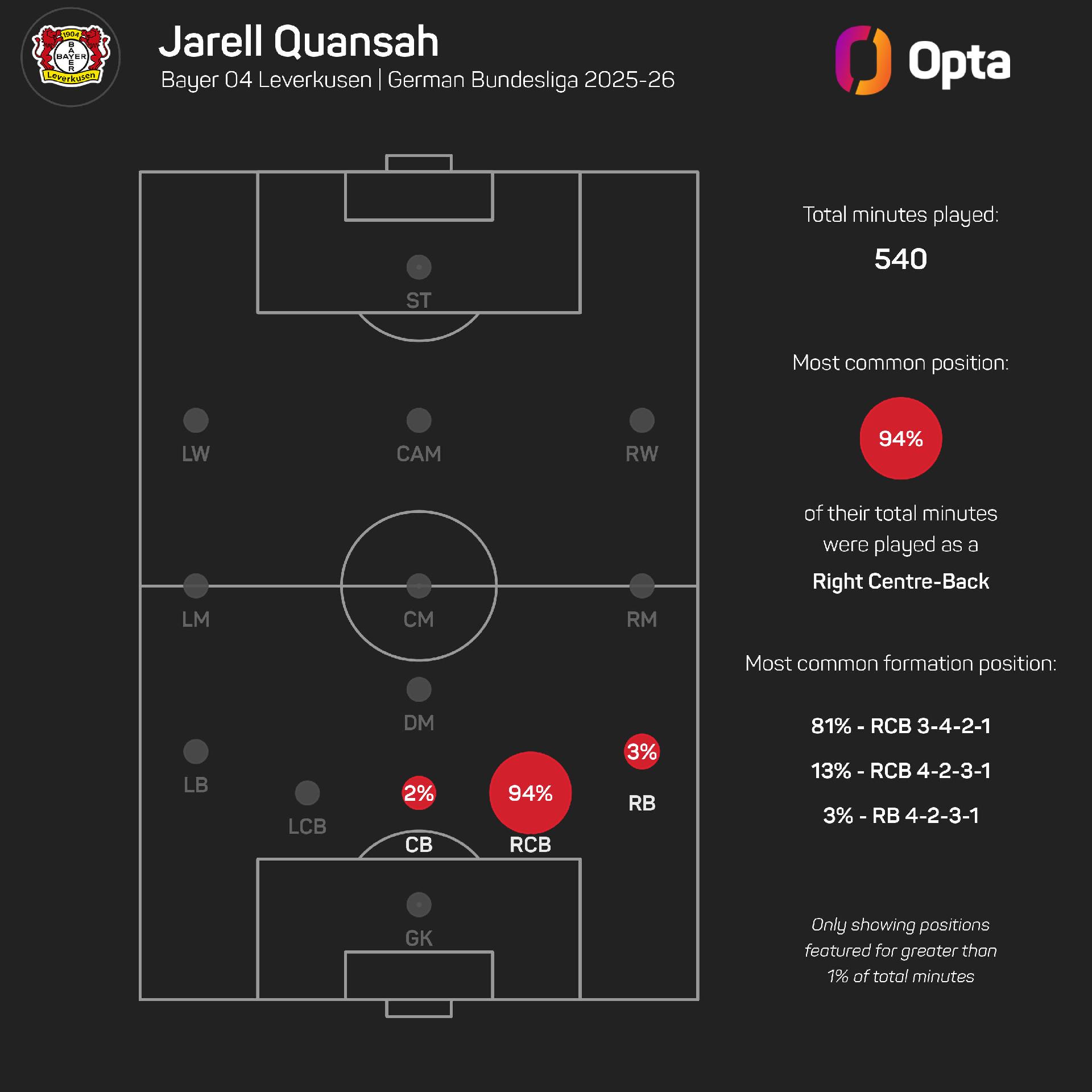 Quansah completed a €40.7m (£35m) move to Leverkusen in July, and has already found more regular opportunities, featuring in all nine of their competitive fixtures so far this season.