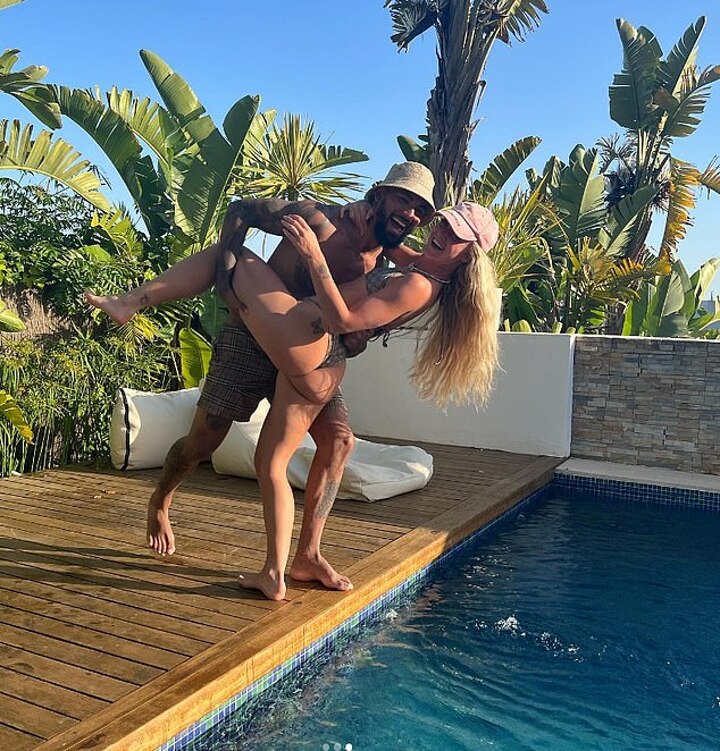 In the pictures, the couple were seen enjoying a sun-soaked trip to a mystery location and looked smitten as they shared a passionate kiss.