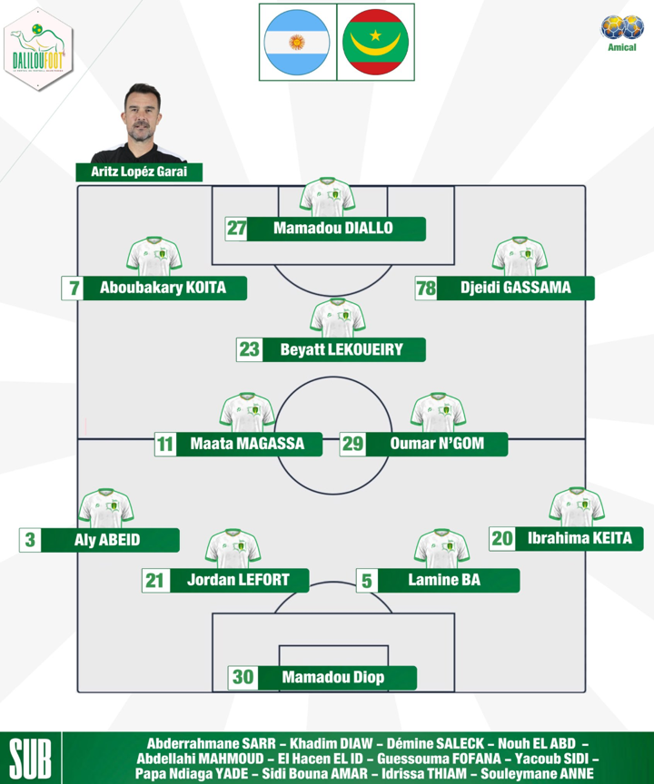 The line-ups of Argentina vs Mauritania have been announced.Argentina XI:Mauritania XI & Subs: Copyright Declaration