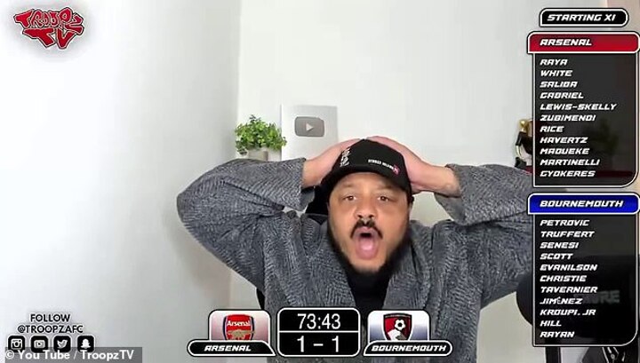 Troopz (real name Aumar Hamilton), formerly one of AFTV's stars, exploded with rage on his own YouTube channel after the Gunners fell 2-1 behind in the second half.