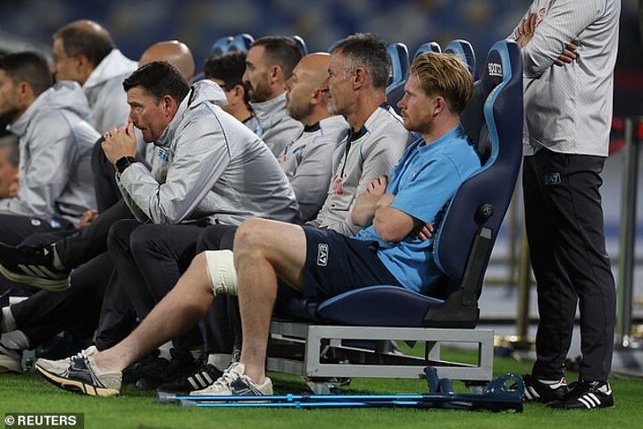 De Bruyne was later seen on the bench with the area heavily bandaged, as he watched his team-mates beat their northern rivals - and top the Serie A table as a result - 3-1.