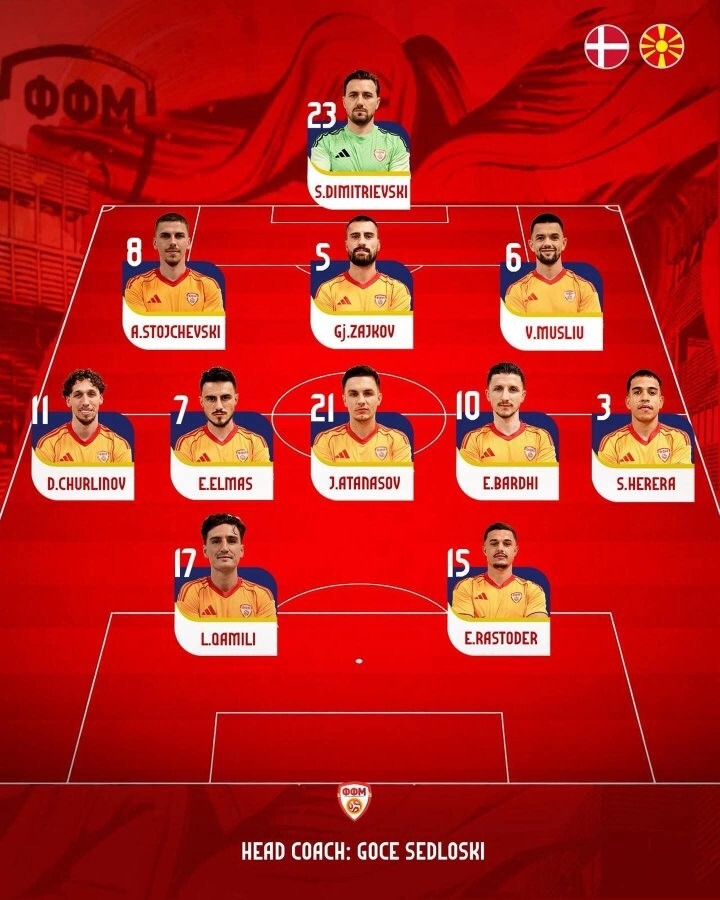 North Macedonia XI: Dimitrievski, Stojchevski, Zajkov, Musliv, Churlinov, Elmas, Atanasov, Bardhi, Herera, Qamili, Rastoder