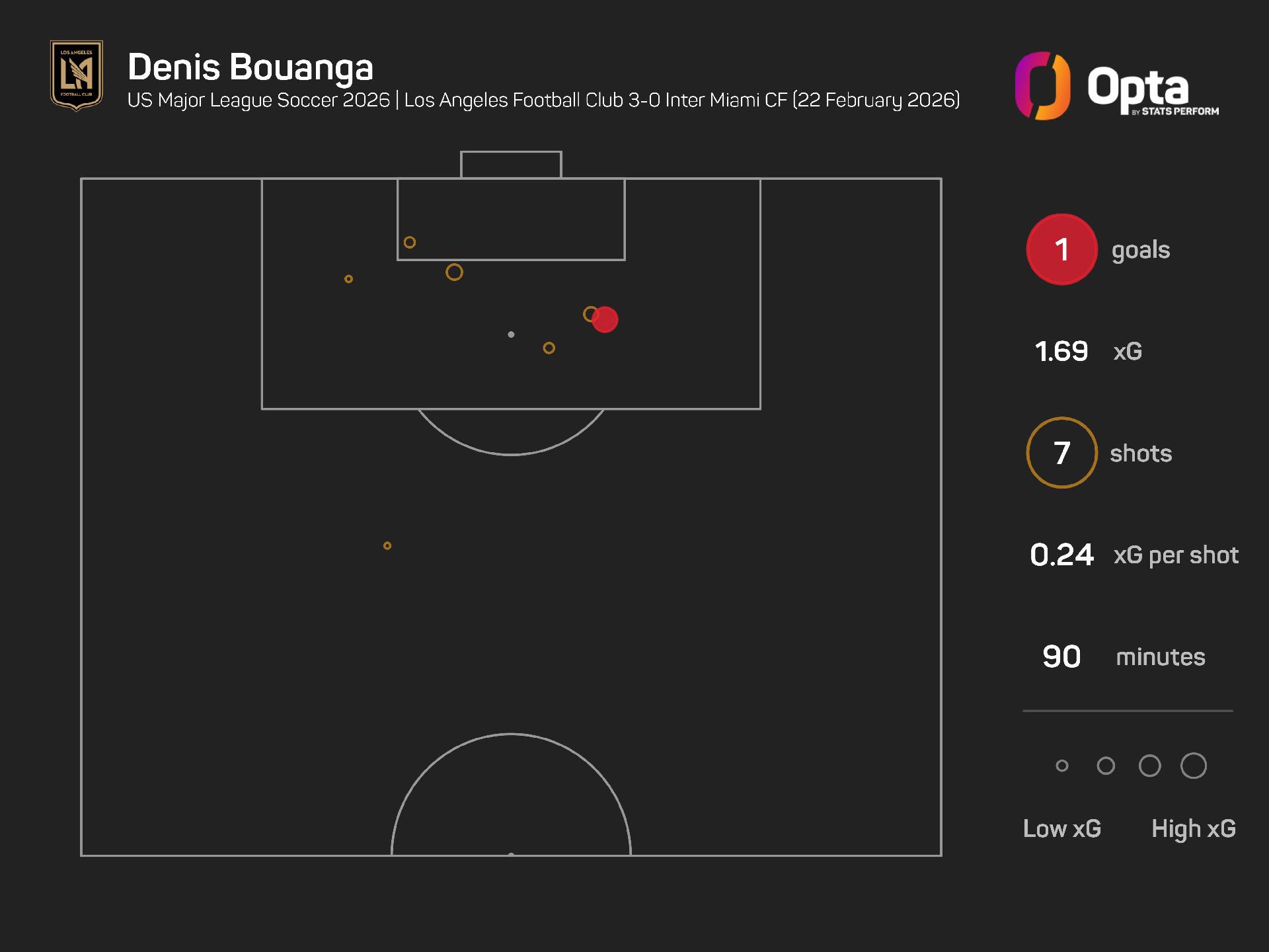 Denis Bouanga recorded a goal and an assist in LAFC's 3-0 win over Inter Miami to open the season.