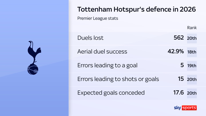But there is also a self-inflicted nature to Tottenham's defensive play. They have made a league-high five errors leading to a goal in 2026. On top of that, no Premier League team has made more errors leading to a shot this calendar year.