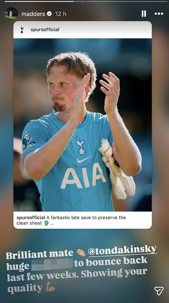 And, following the Wolves triumph, Maddison took to Instagram to heap praise on the keeper.