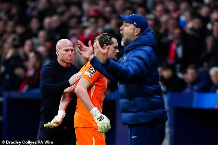 Kinsky looked distraught as he trudged down the tunnel. Senior substitutes Conor Gallagher, Palhinha and Dominic Solanke all jogged behind to console him after a nightmare Champions League debut for Spurs.