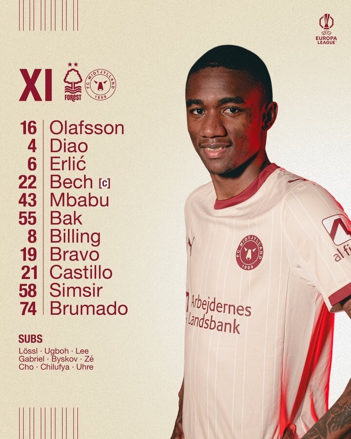 The line-ups of Nottingham Forest vs Midtjylland have been announced.