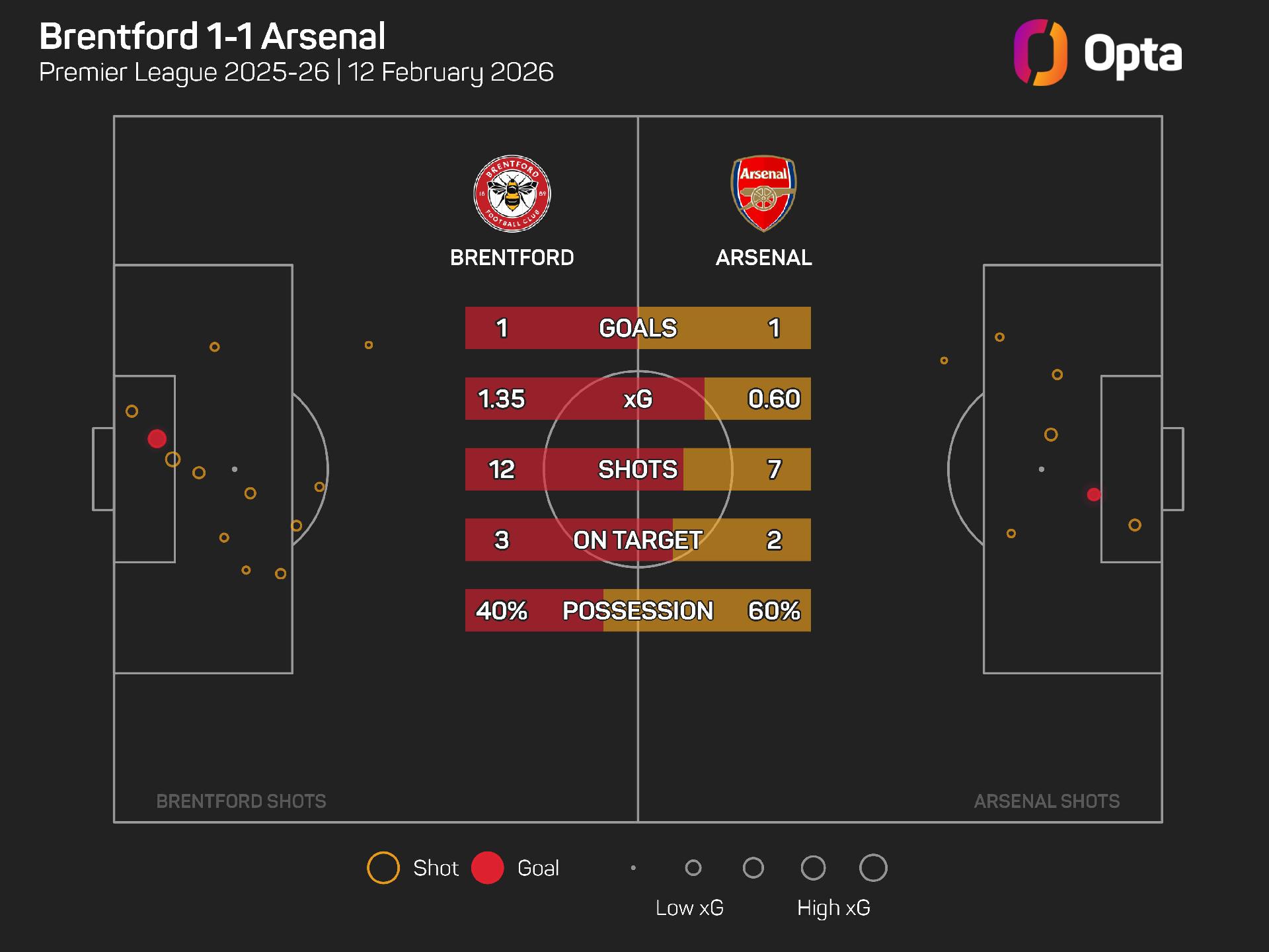 Brentford bettered Arsenal's shot count, having 12 to their seven, with the visitors also only managing one 'big' opportunity to the Bees' three, and Mikel Arteta admitted his side were lacking an edge in the final third.