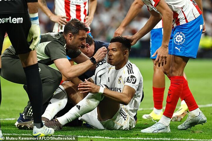 Mbappe had been left bloodied in the face by the collision, with the Real Madrid star requiring treatment above his right eye after being hit by Reis' elbow.