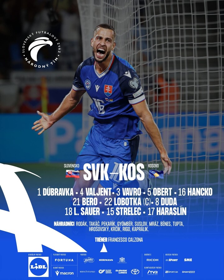 Slovakia XI: Dubravka, Valjent, Vavro, Obert, Hancko, Bero, Lobotka, Duda, L.Sauer, Strelec, Haraslin