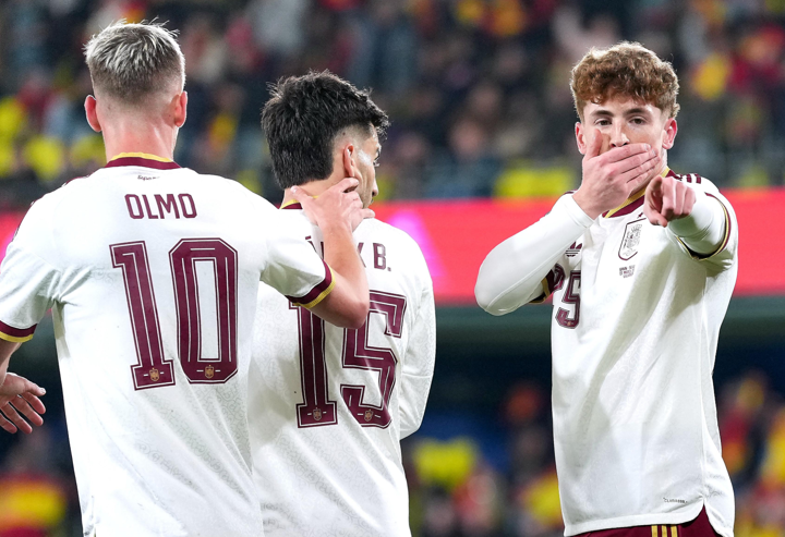 Subs: Grimaldo, Álex Remiro, Iglesias, David Raya, Olmo, Soler, Ferran Torres, Fornals, Martín Zubimendi, Porro, Yeremy, Ander Barrenetxea, Cristhian Mosquera, Víctor Muñoz, Dean Huijsen