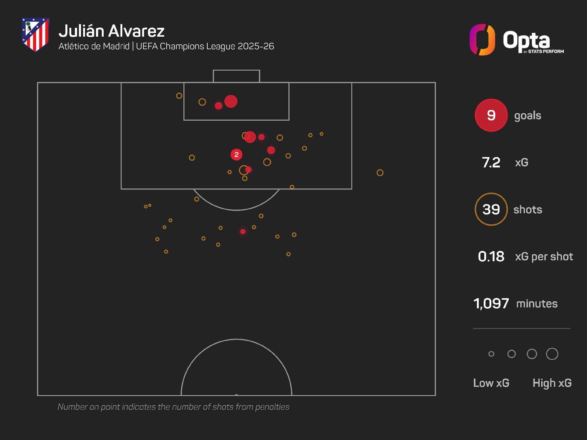 The Argentine, who helped Manchester City pip Arsenal to a pair of Premier League titles in 2022-23 and 2023-24, has already broken the record for the most goals by an Atleti player in a single European Cup or Champions League campaign, netting nine times in 2025-26.