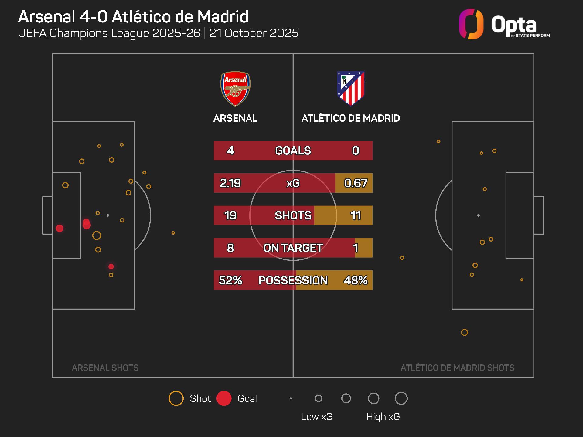Atleti were victorious in 35% of pre-match simulations, with Arsenal winning 37%, while the Gunners got back to the Emirates with a draw in 27.9% of our simulations.