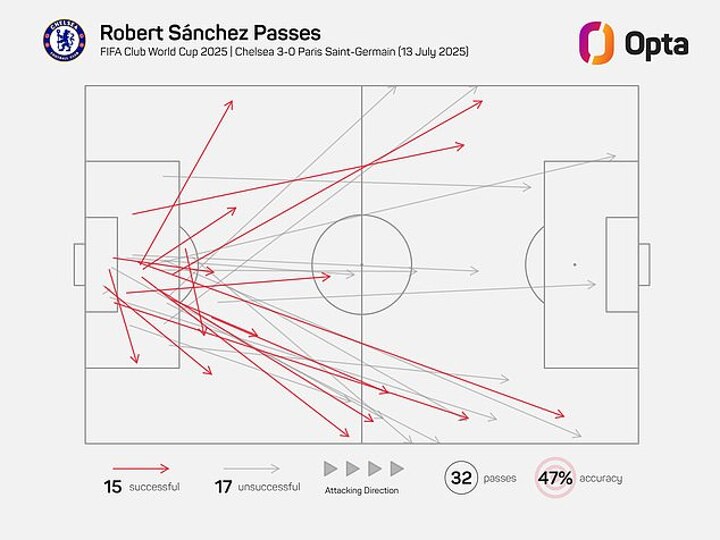 Jorgensen is generally considered to be a better passer and his pass map from Wednesday's loss (below) shows how often he was on the ball, regularly looking to play short. By comparison, Sanchez’s pass map from the Club World Cup final victory over PSG in the summer demonstrates how he routinely looked long to bypass the high press of PSG. It was a pragmatic approach which worked well that day in New Jersey.