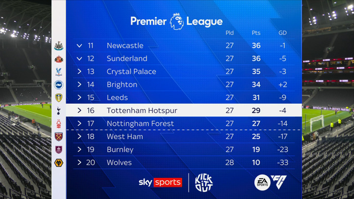 New Spurs boss Igor Tudor said his team will "100 per cent" avoid relegation this season but suffered an emphatic defeat to their north London rivals at home in his first game in charge, meaning they remain in 16th, four points above the bottom three.