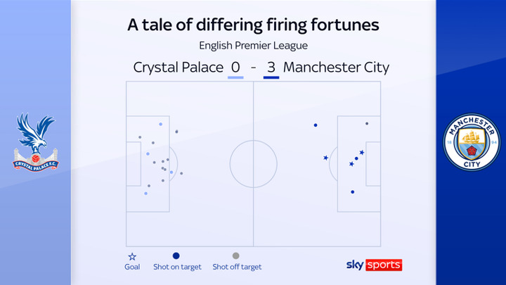 Oliver Glasner's side were taught a lesson in clinical finishing. Man City managed seven shots to Crystal Palace's 16, but six of City's efforts were on target, while four of Palace's tested Gianluigi Donnarumma.