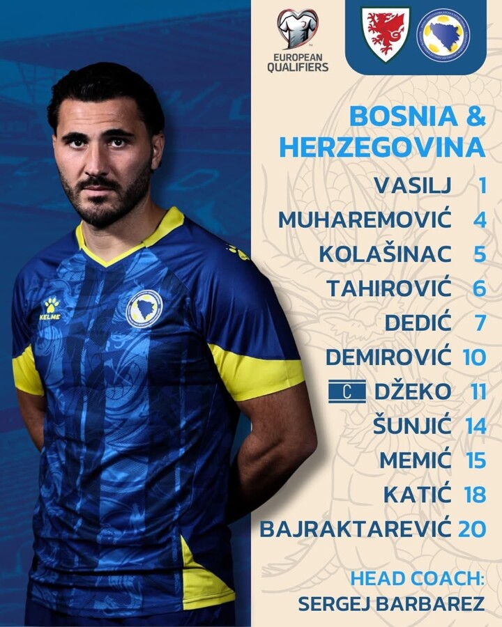The line-ups of Wales vs Bosnia-Herzegovina have been announced.