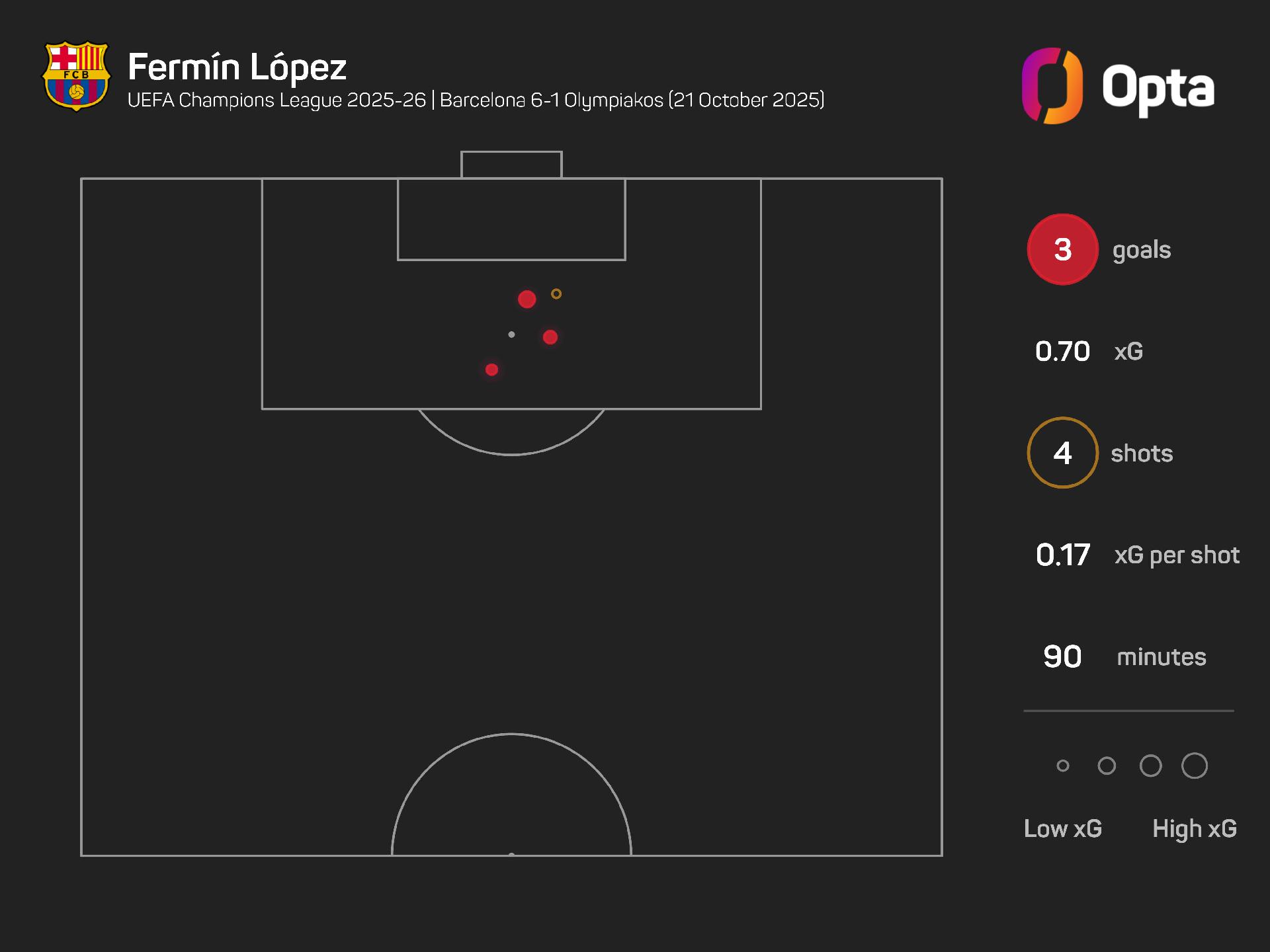 Fermin netted his treble from just 0.7 expected goals (xG) and four shots, all of which were on target, while he played more passes in the final third (29) than anyone else on the pitch.