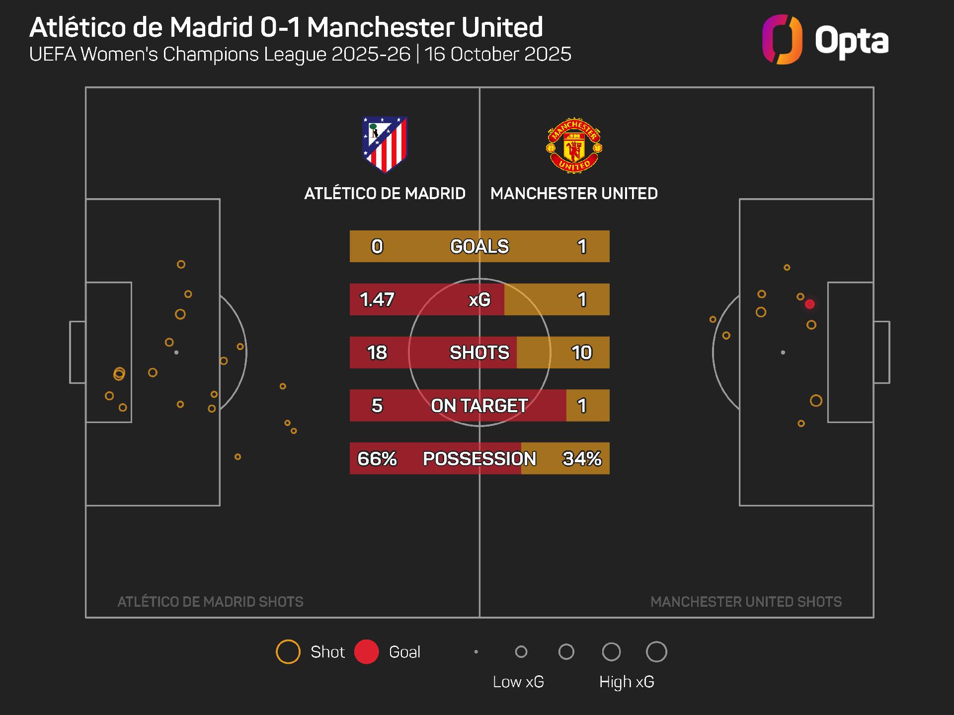 United faced 15 shots in the second half, with Atletico generating 1.2 expected goals (xG), and Phallon Tullis-Joyce had to make six saves overall to preserve her clean sheet.